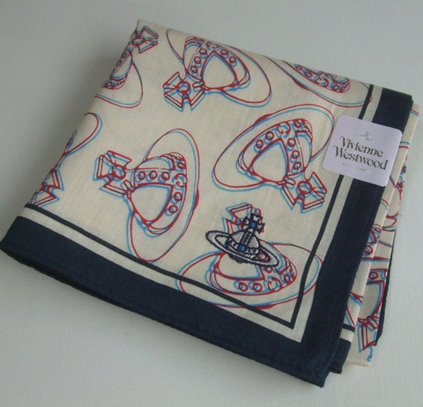- Vivienne Westwood ヴィヴィアン・ウエストウッド オーブ柄 ORB総柄 ハンカチ 未使用品 クリーム系 百貨店 オーブ刺繍