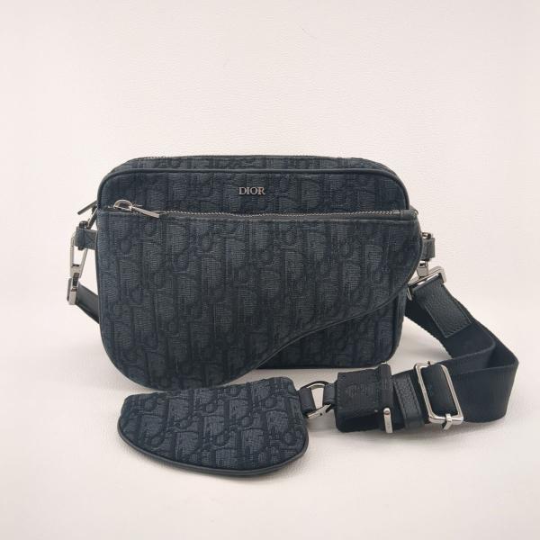 > 美品】クリスチャンディオール サドル 3-in-1 ショルダー ボディバッグ オブリーク ジャカード ネイビー Christian Dior ◆2005