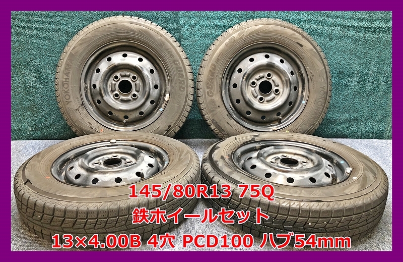 - 2022年製 145/80R13 75Q YOKOHAMA iG70 中古 スタッドレス/中古 鉄ホイール 4本 4穴 PCD100 ハブ54mm