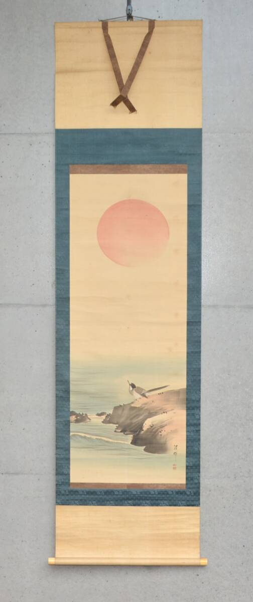 > 【模写】 84◆初荷です ◆掛軸 横物清暉 旭波鶺鴒之図 絹本 ◆保存箱 江戸末期四条派の絵師 師は松村景文