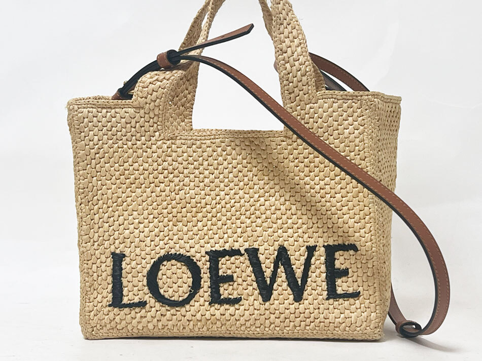 - LOEWE ロエベ フォント トート スモールバッグ ショルダーバッグ ラフィア A685B59X03 美品
