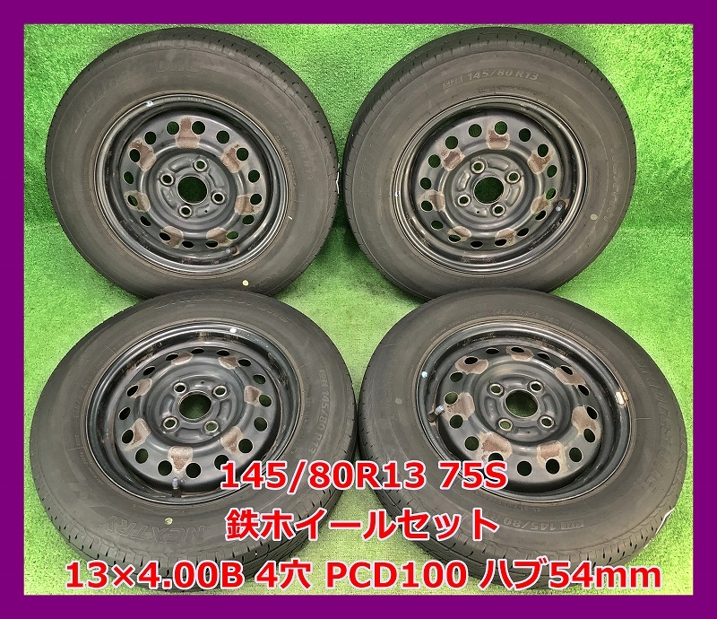 - 2021年製 145/80R13 75S ブリヂストン NEXTRY 中古 タイヤ 夏タイヤ/中古 鉄ホイール付 4本 4穴 PCD:100 ハブ54mm