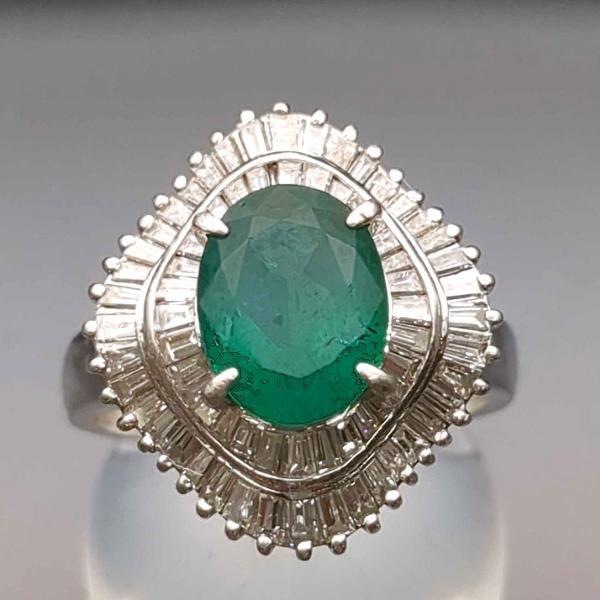 - ソーティング 天然エメラルド 2.25ct リング 指輪 ダイヤ 1.05ct Pt900 9.8g 15号 ジュエリー 中古 ◆2008