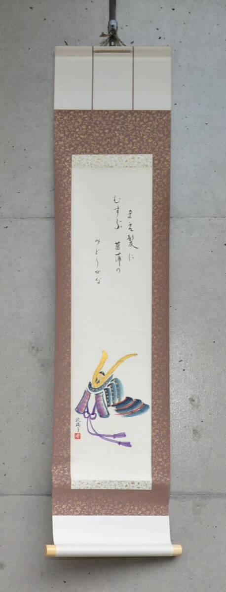 - 【模写】 98◆初荷です ◆掛軸 琉璃子 兜図 俳画 小品 紙本 丹後の節句