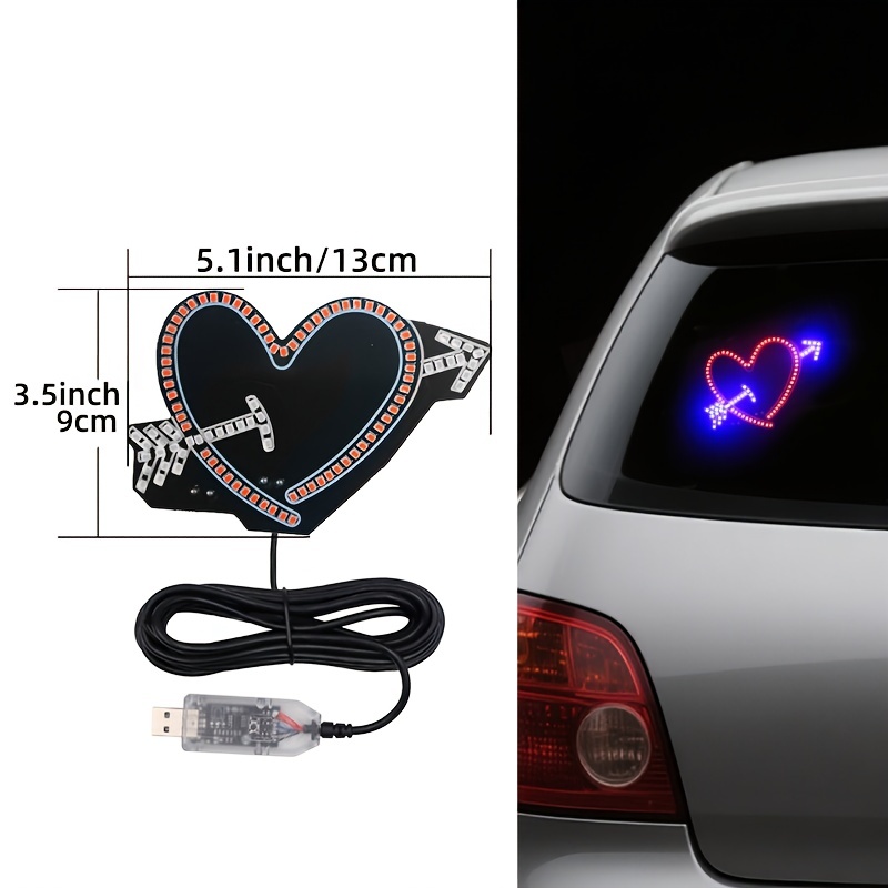 - 車用 ハート型 キューピット LED アンビエントランプ ミニライト 補助ライト 13cm USBライト レッド ブルー 車内装飾 外装 おしゃれ t8895