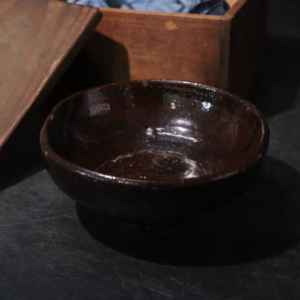- 時代 楽焼 茶碗 木箱付 / 検索: 屋島焼 京焼 黒楽 天目茶碗 煎茶道具 .B1183