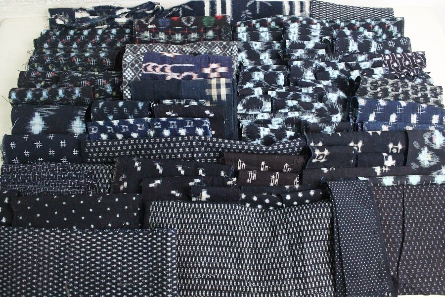 - TB526古布 絣 木綿製◇藍染/文人絣/書生絣/雪絣/井桁/久留米絣?/端切れ/襤褸/リメイク素材/古裂/和布/綿布/キルト/布絵/古道具タグボート