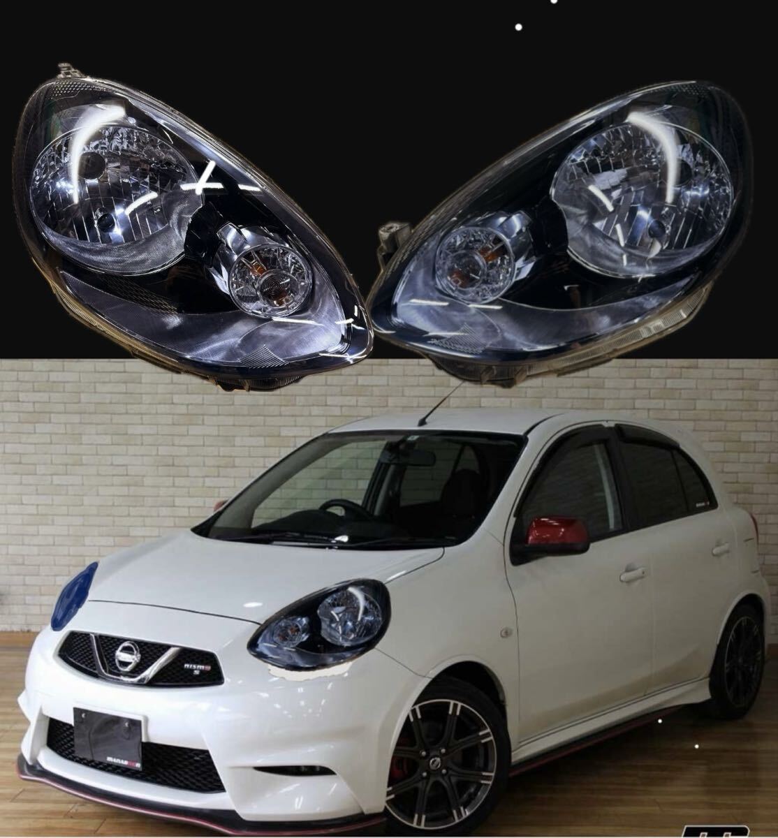 - 日産 マーチ ニスモ K13-改 ハロゲン 左右ヘッドライト スモーク塗装済み(車検OK)取付部割れ無し