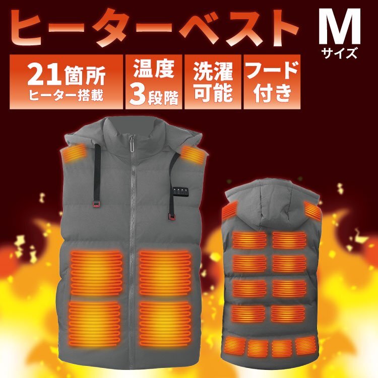 - 電熱ベスト ヒーターベスト バッテリー対応 速暖 電熱ジャケット 21エリア発熱 フード付 3段階温度調整 軽量 洗える 防寒着 ヒートベスト