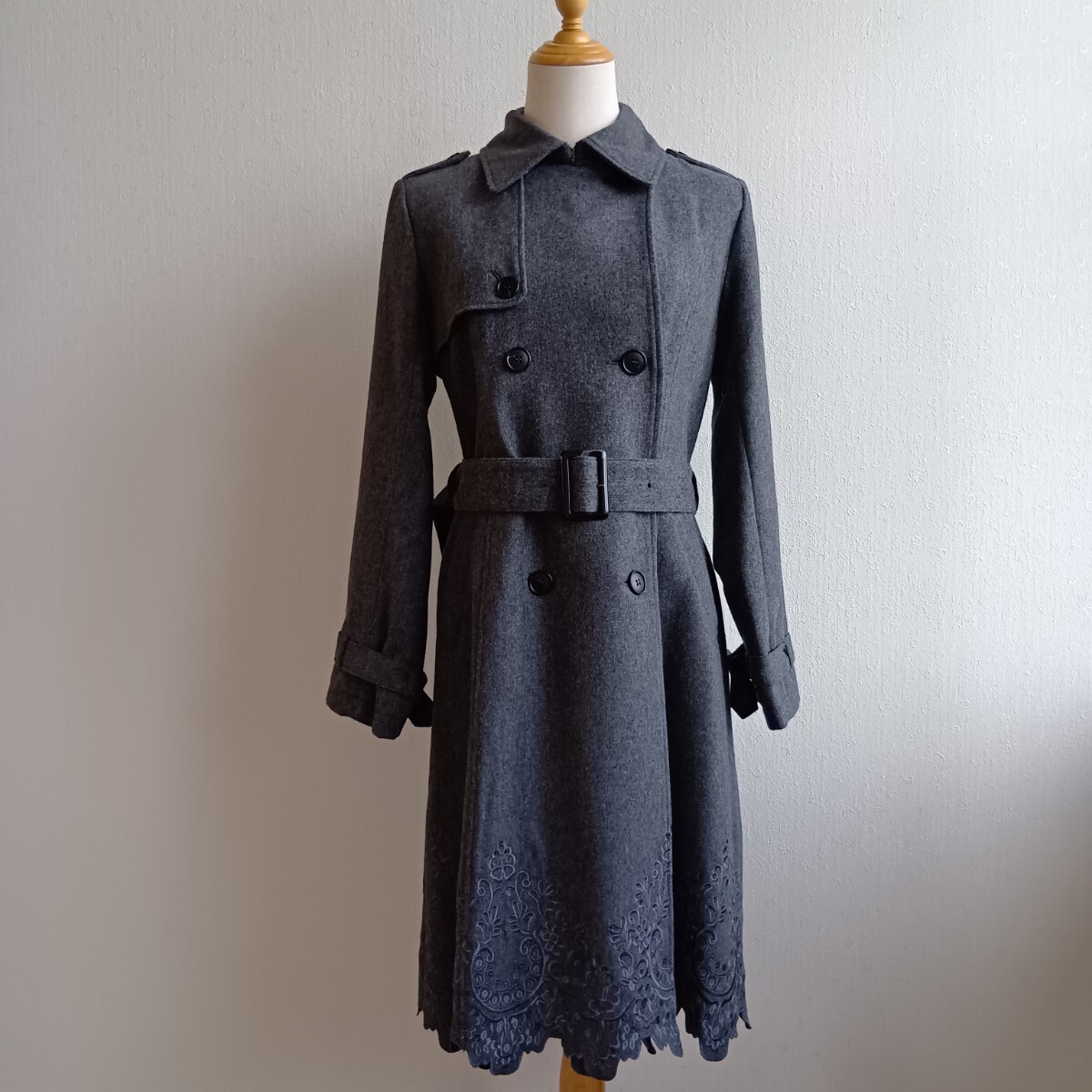 - 【タグ付き未使用】DAMA collection ダーマコレクション ロングコート 裾刺繍 花 ベルト付き ウール混