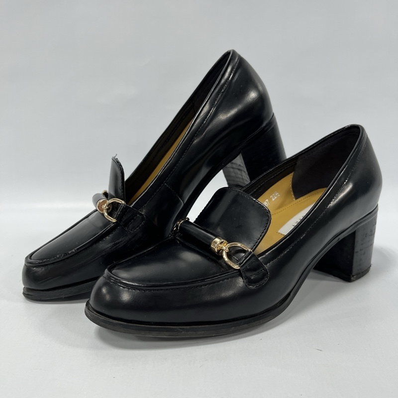 > MACKINTOSH PHILOSOPHY/マッキントッシュ フィロソフィー/チャンキーヒール/バービットローファー/ゴールド金具/ブラック/レザー/22.5cm