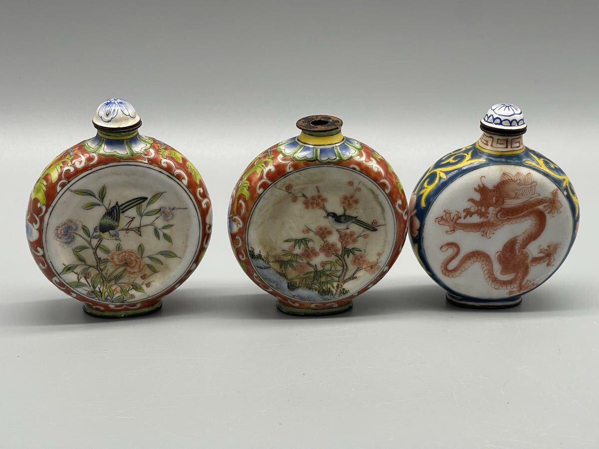 - 古中国★民国時期★鼻炎壷3個 色絵 金彩 中国美術