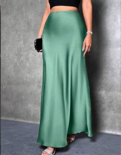 - M1211 スカートレディース● 着心地抜群 20代30代40代 ●大活躍 光沢 ロング丈 素敵 緑