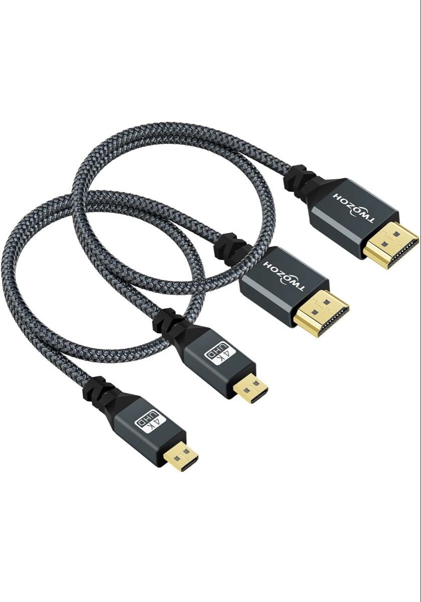 - Twozoh Micro HDMI - HDMIケーブル 1M 2本入り ナイロン編組マイクロHDMIケーブル 3D/4K@60Hz 18Gbps/2160P/1080P対応