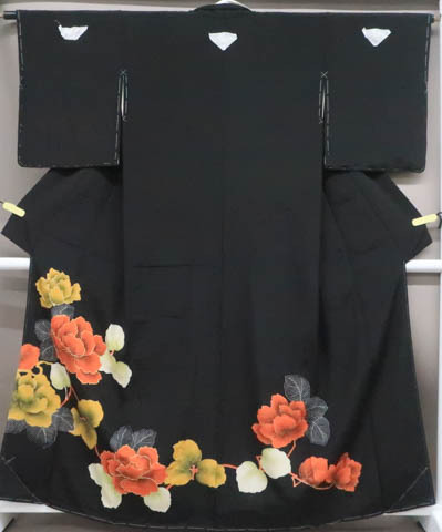 - 《古美術京松》【着物】 セミアンティーク 黒留袖 五つ紋 金駒刺繍 花文 比翼仕立て 身丈約159cm 裄丈約63cm kyo7z05-274