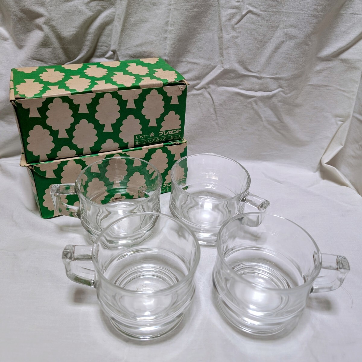 - ガラスモーニングカップ2箱(2個入×2)タケダ食品 いの一番 ノベルティ 非売品 洋食器 【同梱可能、返品不可】