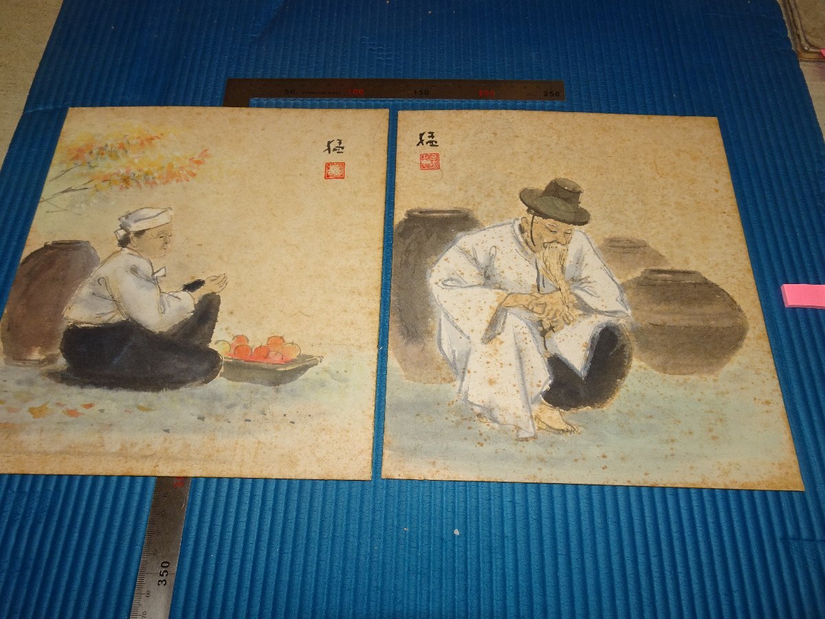 - Rarebookkyoto F2B-330 李朝朝鮮 肉筆色紙 黒田猛 朝鮮人物 二枚セット 1930年頃 名人 名作 名