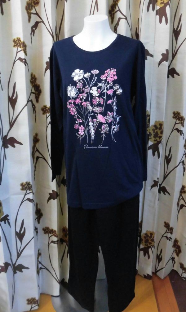 - g-house 紺色に花柄のパジャマ 部屋着 サイズM