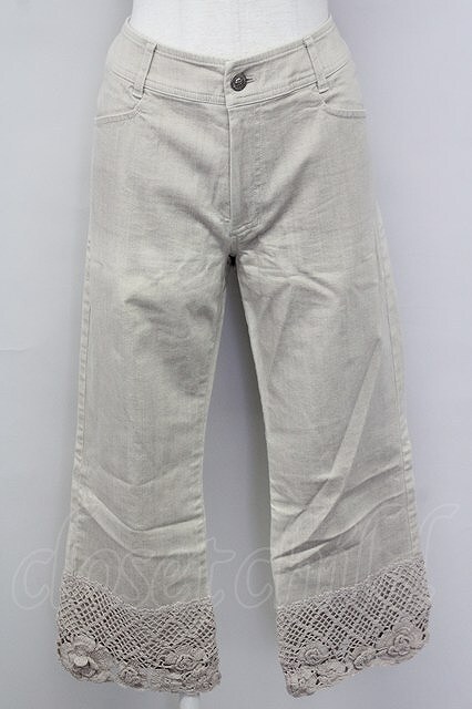 - INGEBORG / 裾ニットカメリアモチーフパンツ L アイボリー T-25-09-26-033-LO-PA-SA-ZT441