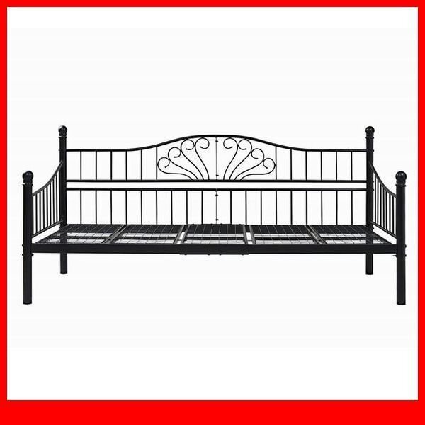 > ベッド★ロートアイアン デイベッド シングル フレーム/パイプベッド ソファベッド/姫系 高さ調節 床下収納/ブラック/即決/a1