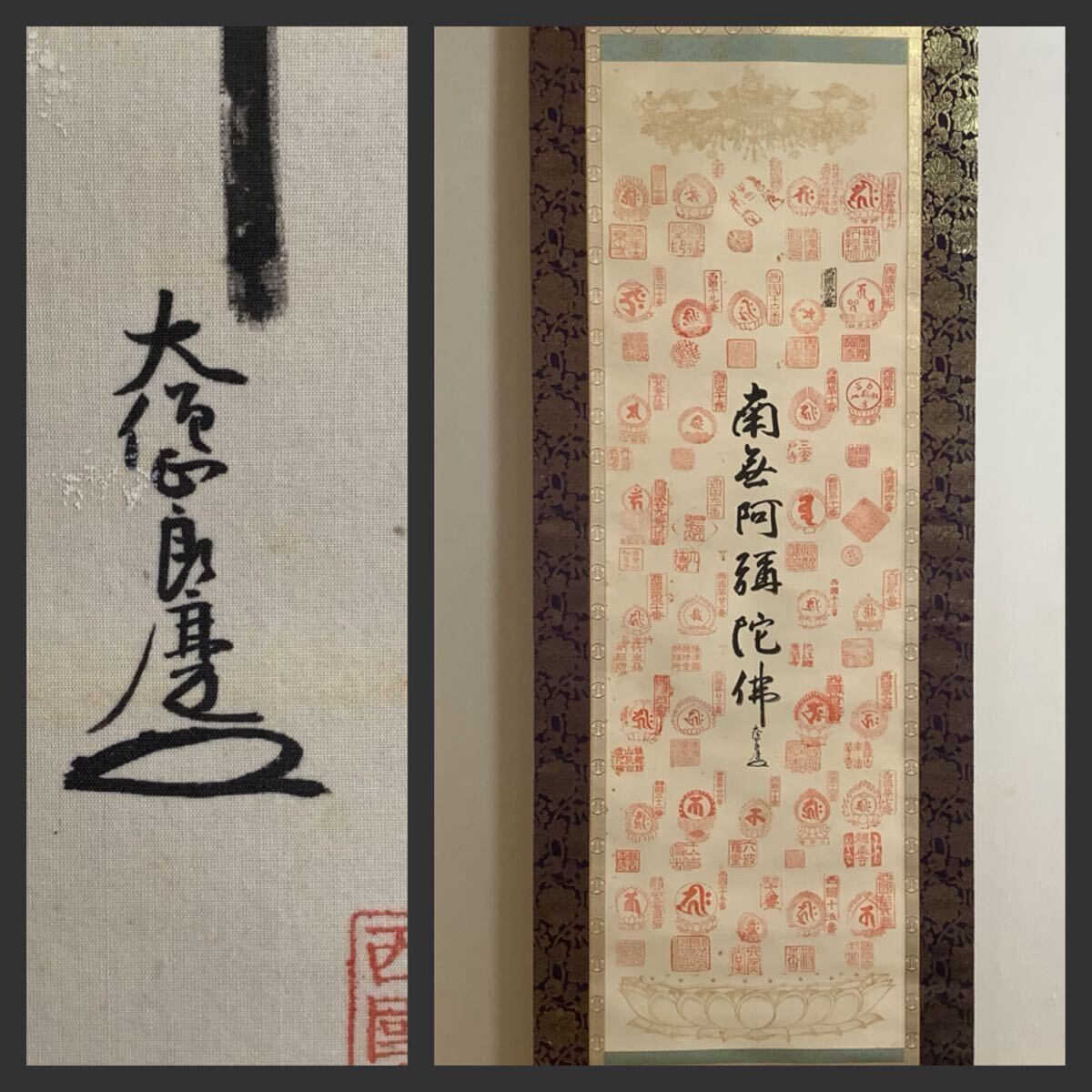 - 【模写】掛軸Oct721BL[大西良慶 西国三十三ヶ所霊場集印軸 六字名号]絹本 書いたもの 木箱/仏画 仏教美術 北法相宗 京都清水寺貫主