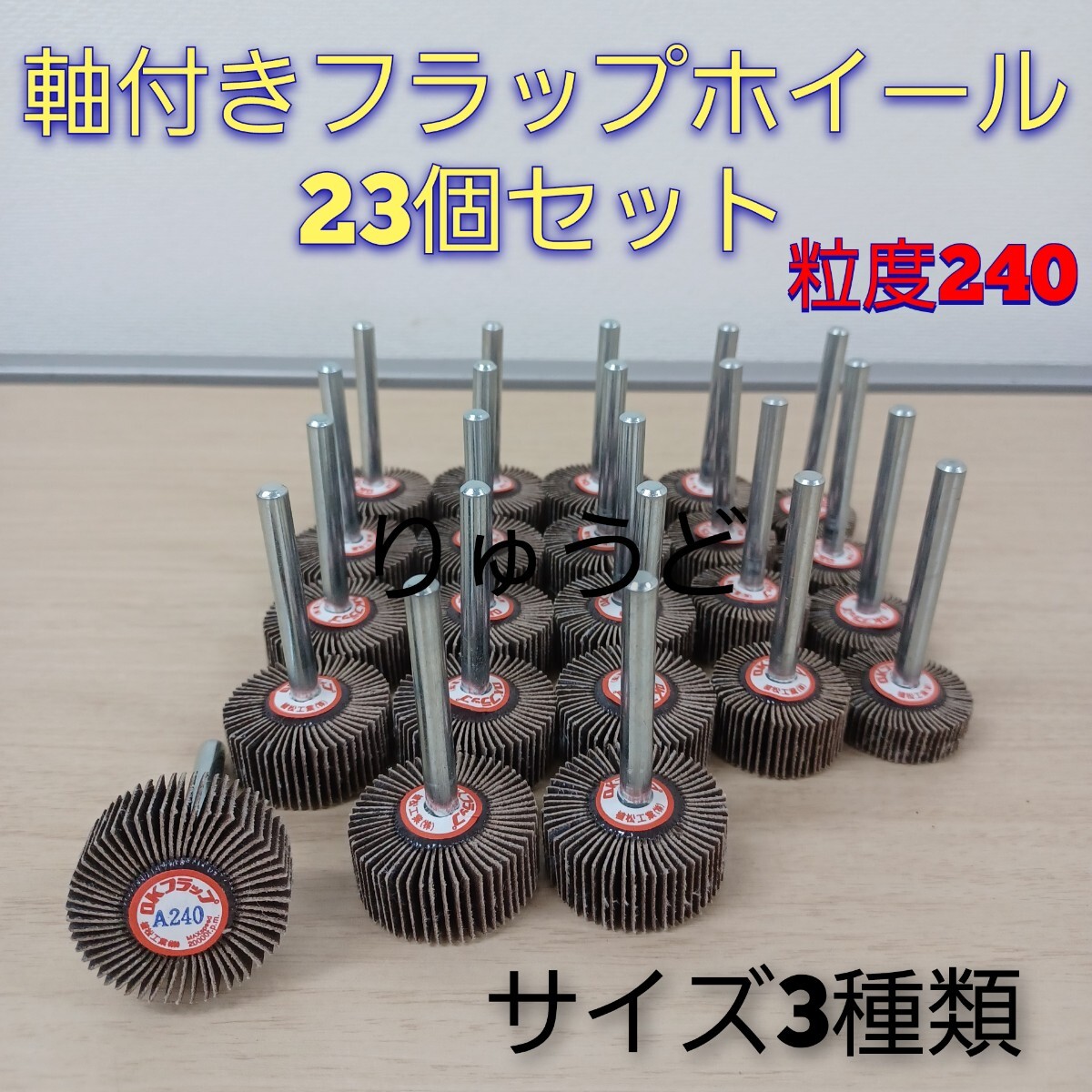 - 石⑦)軸付きフラップホイール 23個セット 植松工業 粒度240番 フラップホイール グラインダー 研磨 研削 工具 251007(F1-3