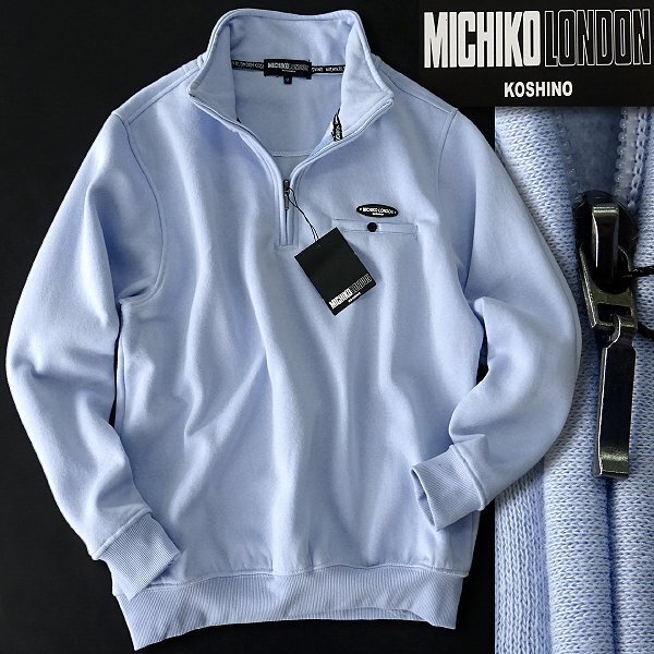 - 新品 ミチコロンドン 秋冬 裏暖 フリース ハーフジップ トレーナー LL 水色 【3WML-R261_LBL_LL】 MICHIKO LONDON メンズ スウェット 裏起