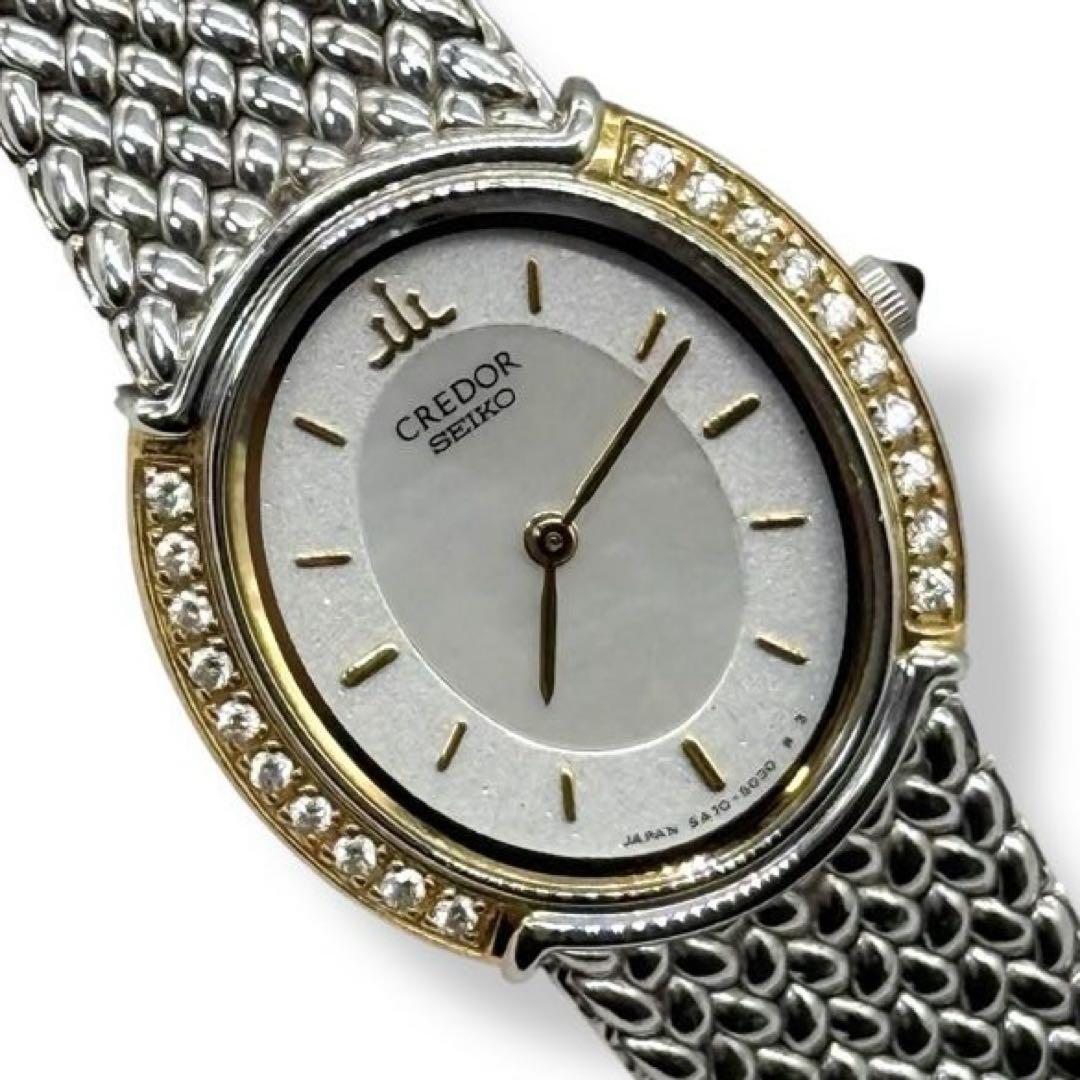 > 新品電池/稼働 セイコー クレドール 腕時計 18KT 20p ダイヤ SEIKO 5A70-3000 GSWE984 シグノ ホワイトシェル文字盤 4137