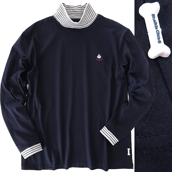 > 新品 シェルティークラブ リブ切替 ハイネック カットソー M 紺 【SH1443217_79_M】 Sheltie Club 秋冬 Tシャツ メンズ ボーダー