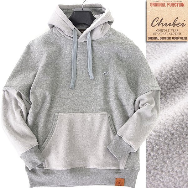 > 新品 チュウベイ フリース 切替 裏起毛 スウェット パーカー LL 薄灰 【CH1444211_97_LL】 CHUBEI フーディ 秋冬 メンズ フード