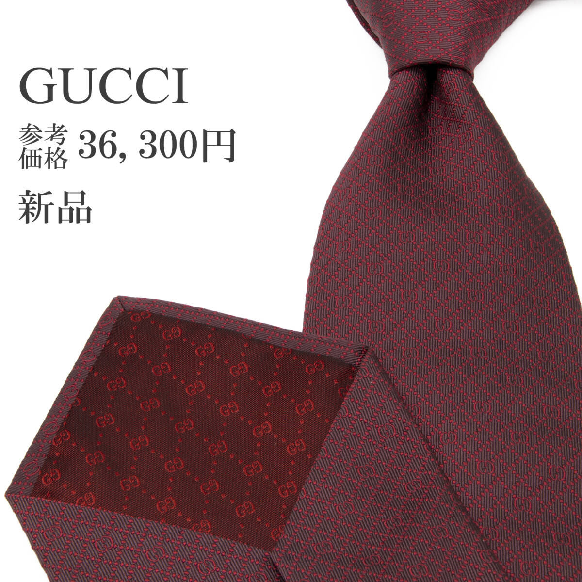 - 送料無料 グッチ ネクタイ ジャガードタイ 新品 シルク ダークブラウン 赤 ディアマンテ GGロゴ マーク ブランド おしゃれ イタリア製 P508