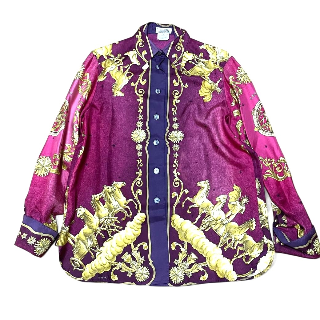 - HERMES マルジェラ期 エルメス COSMOS 宇宙観 シルク ホース 馬 長袖 シャツ ブラウス セリエボタン ヴィンテージ オールド #A3687