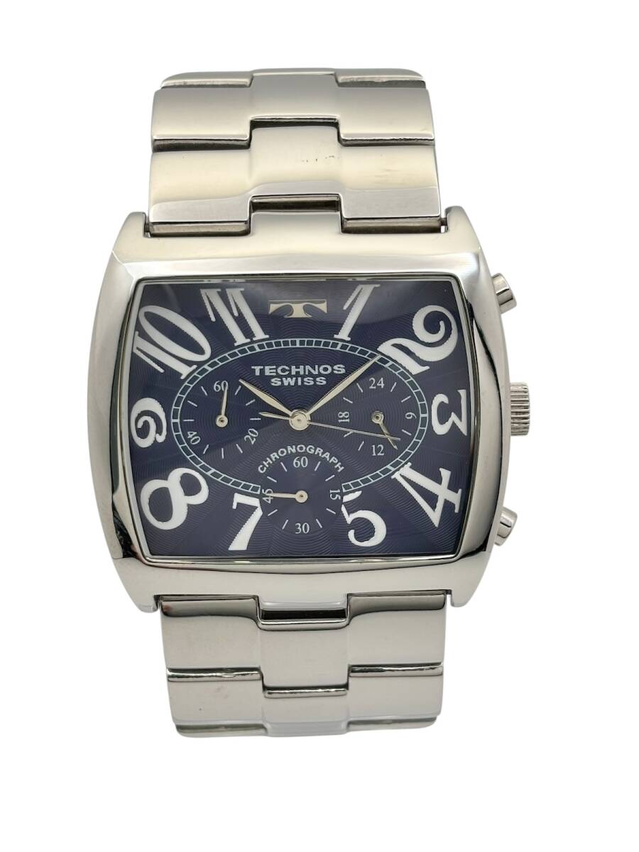 - TECHNOS TBM624 テクノス クロノグラフ クォーツ ネイビー スクエア 稼働品 腕時計 //C333003