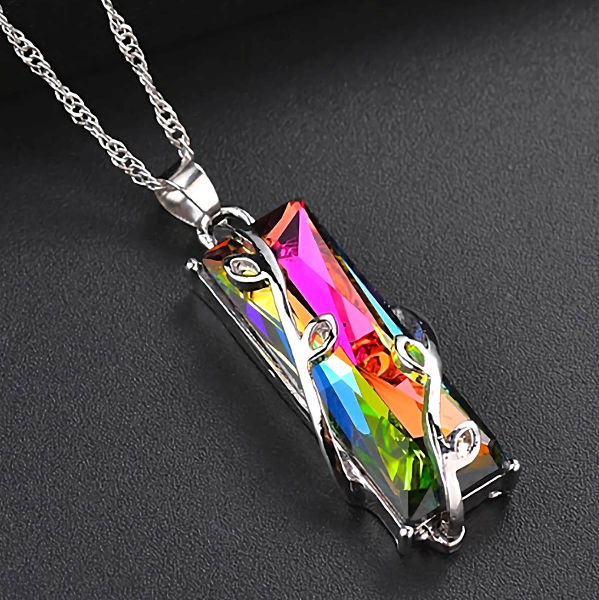 - 新品★送料無料★虹色ミスティックトパーズ蔦スクエアプラチナ仕上925シルバーネックレス誕生日プレゼント旅行連休秋祭ギフト国内発送