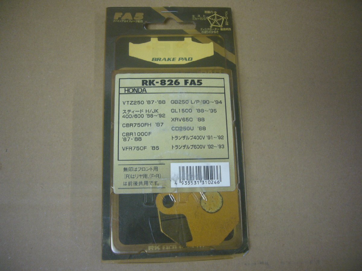 > 【BST】た□RKブレーキパッド RK-826 FA5 VTZ250 スティード 他 未使用