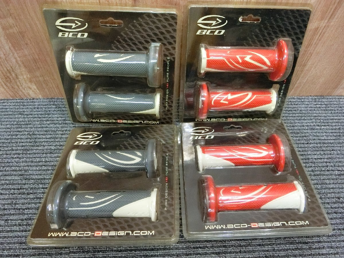 ◆BCD/ハンドルグリップ/オリジナルグリップ/グレー×ホワイト/レッド×ホワイト/全長120mm/非貫通/バイクパーツ/4点セット