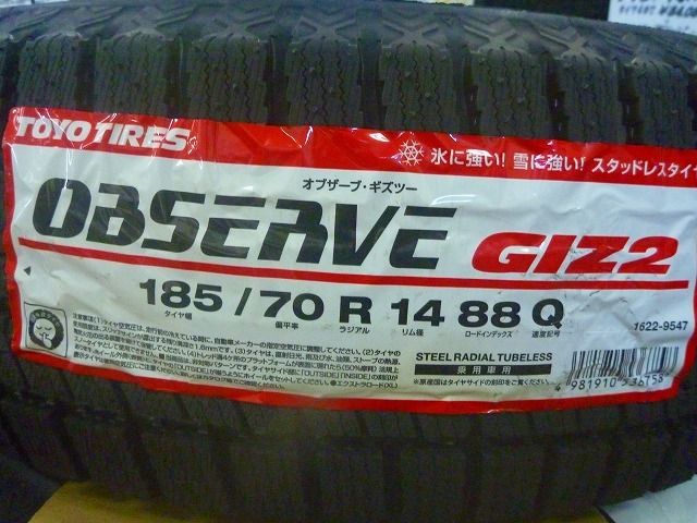 > 【送料無料】冬タイヤ2024年製 TOYO OBSERVE GIZ2 185/70R14 4本セット税込¥38,800-