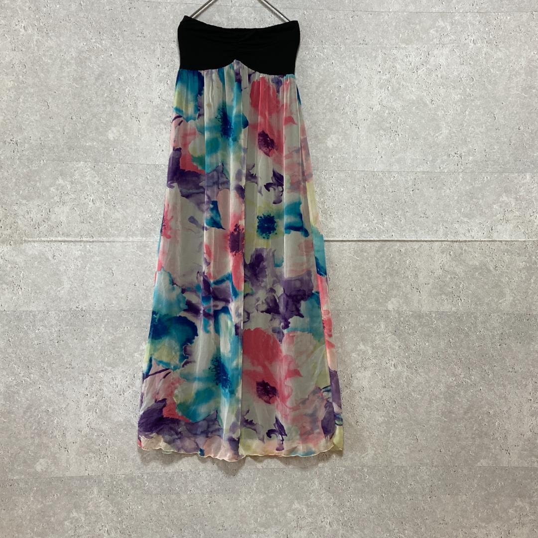 - 【MURUA】ムルーア(F)花柄チューブトップワンピース*伸縮性*裏地*透け感