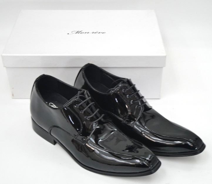 - M868Mちょる☆未使用品☆Monreveモンレーヴ エナメルシューズ 7cmUP シークレットタイプ 25.0cm メンズシューズ 靴 EM-07 結婚式ブライダル
