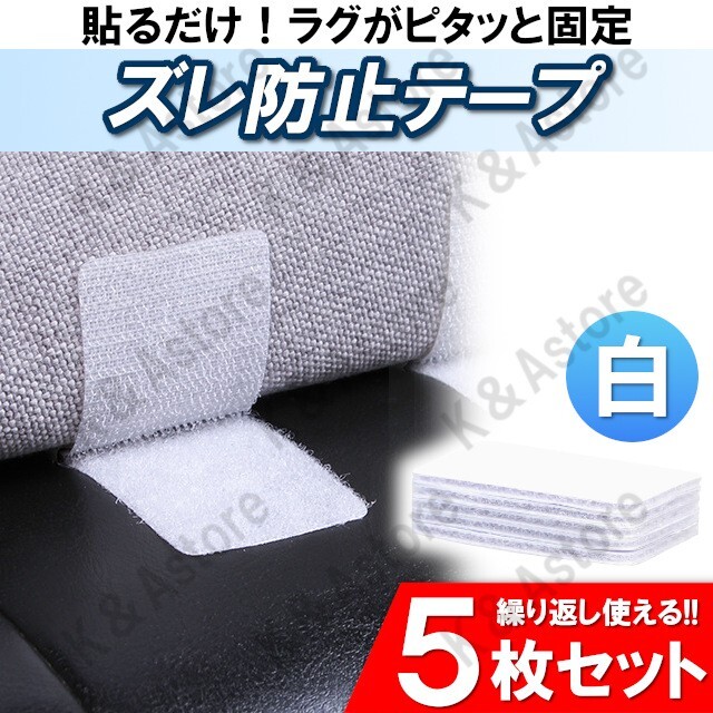 - カーペット ラグ ずれ防止 滑り止め 両面テープ マジックテープ 粘着シート 固定用 40×60mm ホワイト 白 5枚セット