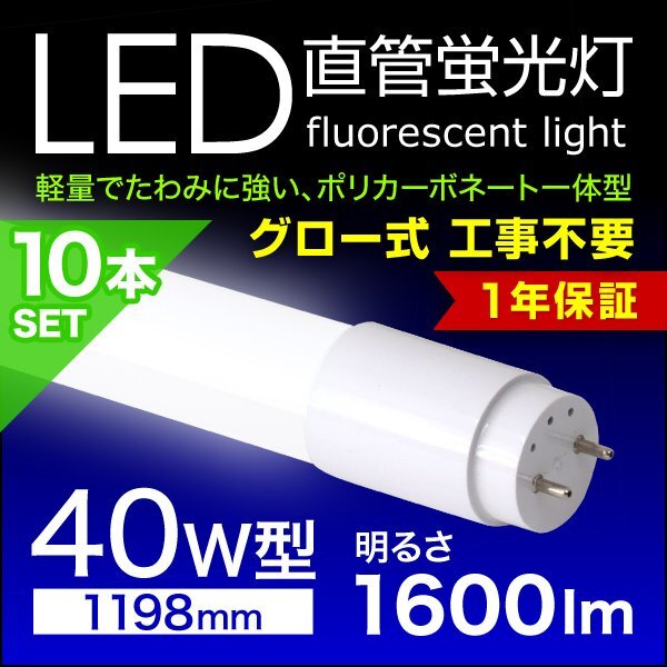 > LED蛍光灯 10本セット 直管蛍光灯 40W形 1200mm 高輝度SMD グロー式 工事不要 1年保証付き 電気 照明