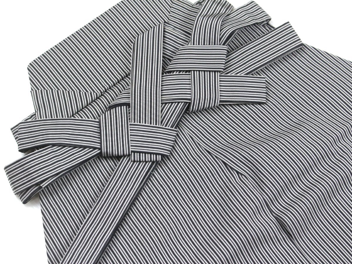 【紳士物 行燈袴】黒グレー 縞柄 紐下:85cm e-1866拍卖