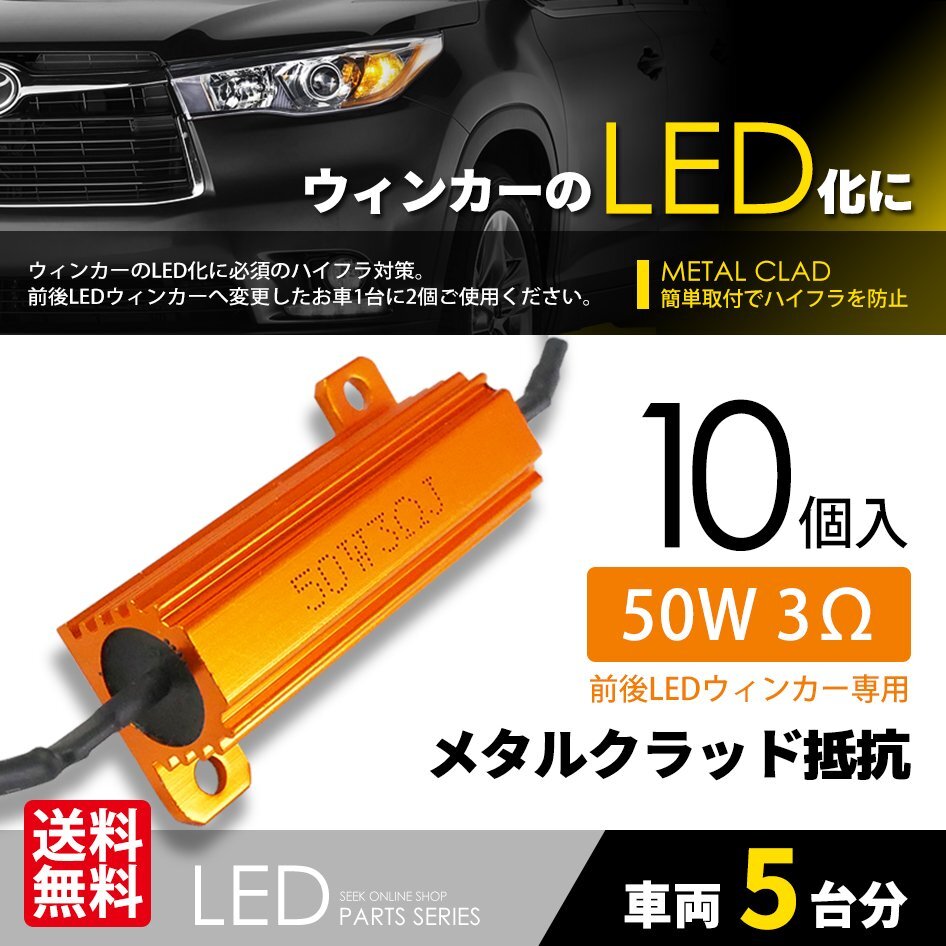 > 抵抗器 10個 LED化 必須ITEM 50W 3Ω LEDウインカー ハイフラ防止 キャンセラー カーアクセサリー 安心の国内検査 ネコポス 送料無料