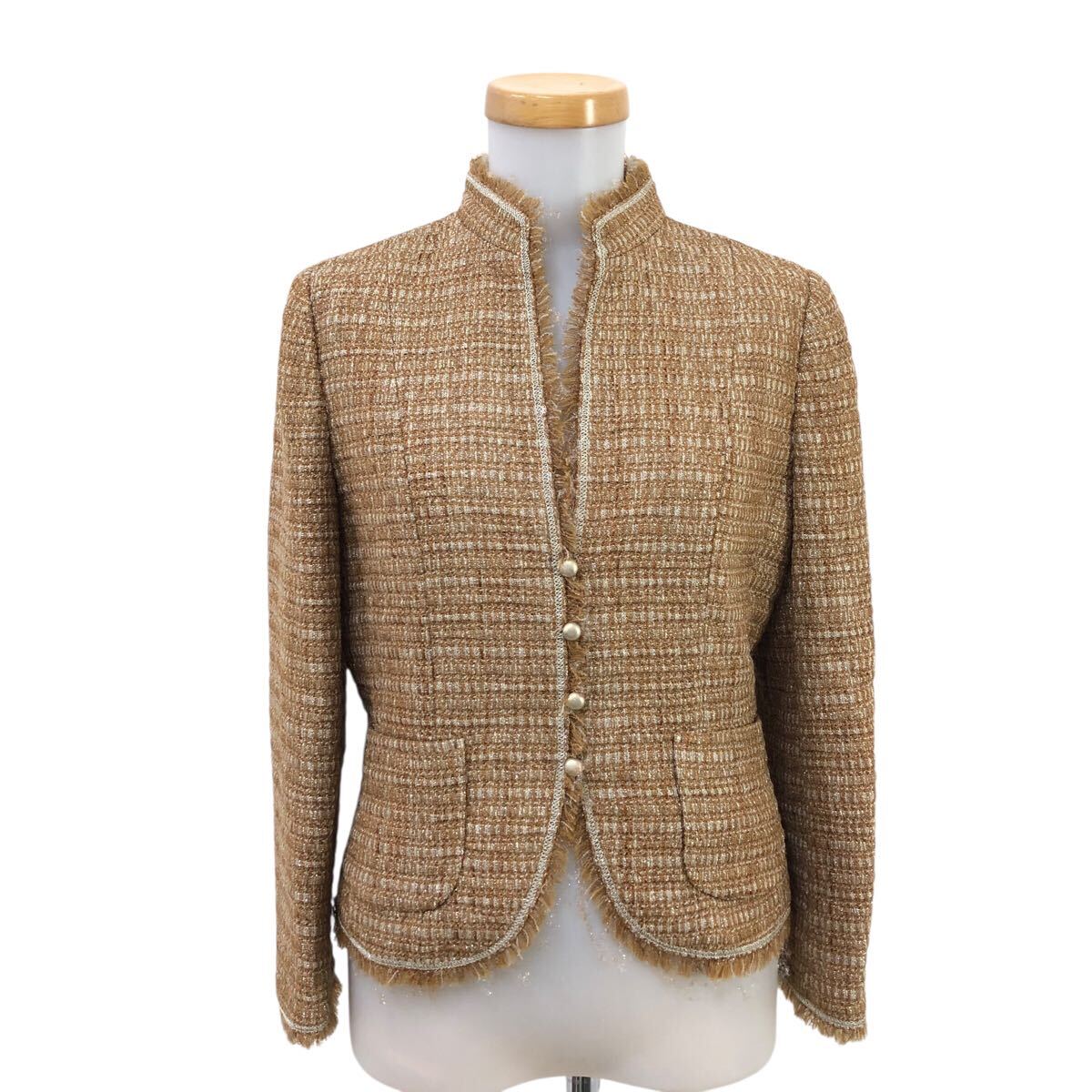 - 10Nm330-71 K.T KIYOKO TAKASE キヨコタカセ ラメ ツイード ツィード ジャケット 上着 羽織り アウター ベージュ系 レディース 11 日本製