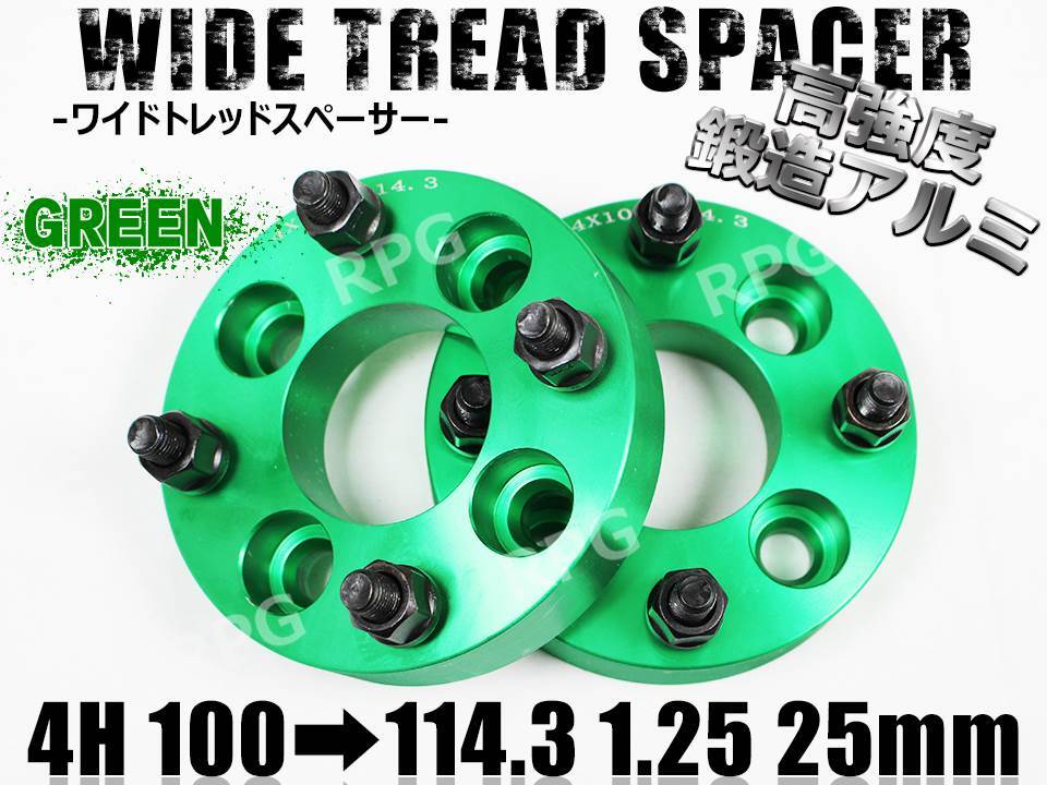- 4H100114.3変換 ワイドトレッドスペーサー 2枚組 1.25 25mm 緑