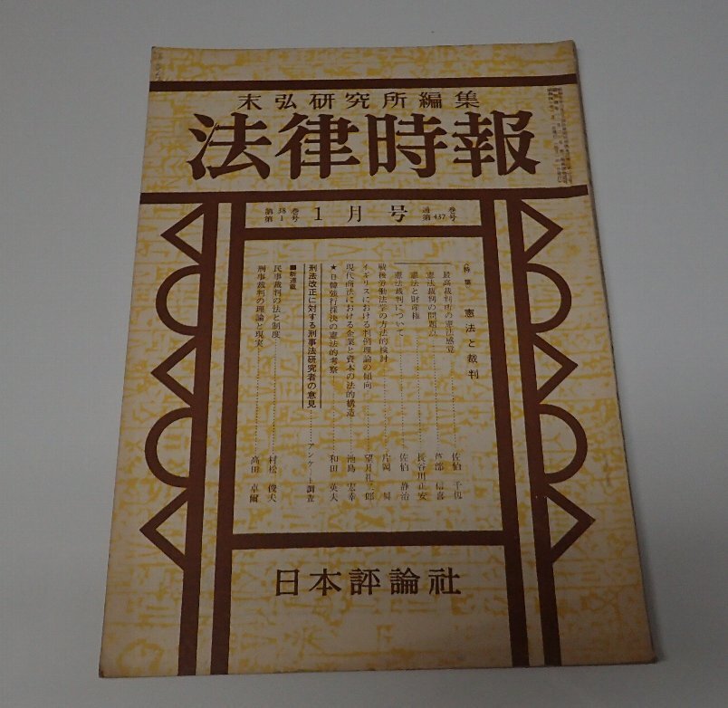 ●「法律時報 第437号 1966年1月 第38号巻1号 憲法と裁判」 末弘研究所 日本評論社