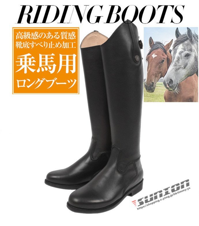 - 乗馬用品 本革 乗馬ブーツ 牛革 ブーツ 長靴 ロングブーツブラック 馬具タウンユースブーツ 乗馬用 乗馬靴 男女兼用ジュニア