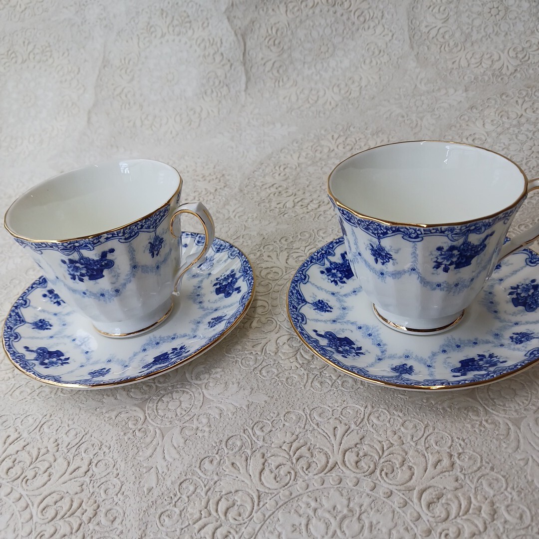 - イギリスロイヤルギャレー カップ& ソーサー 金彩 ペア 洋食器 未使用保管品
