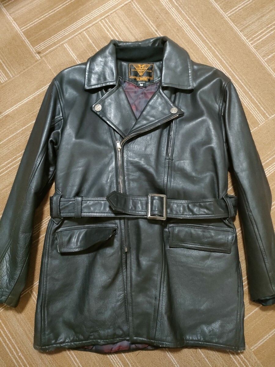 > サイズ:M KOMINE レザーライダースジャケット ライダースコート コミネ 黒 本革 ダブル ツーリング カーコート 中綿入り 牛革