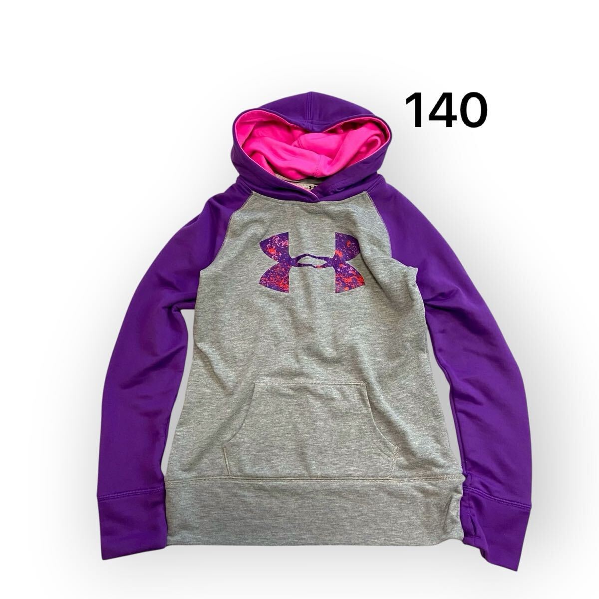 > UNDER ARMOUR アンダーアーマー フーディー パーカー プルオーバー スウェット グレー パープル ジュニア キッズ140